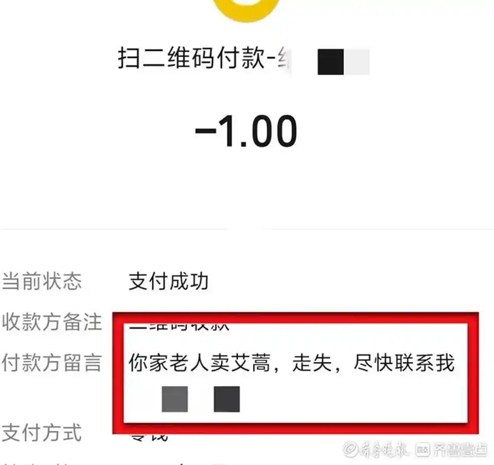 韩建平立刻掏出手机扫描收款码,连续进行了五次转账,每次转账,他都在备注栏里输入老人走失的信还有自己的手机号码。